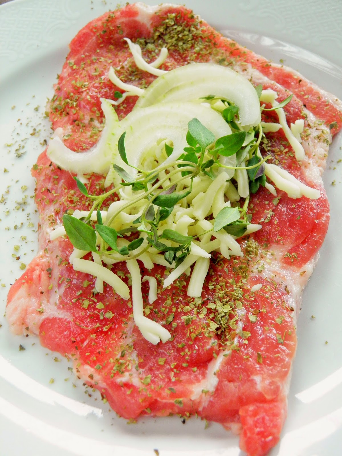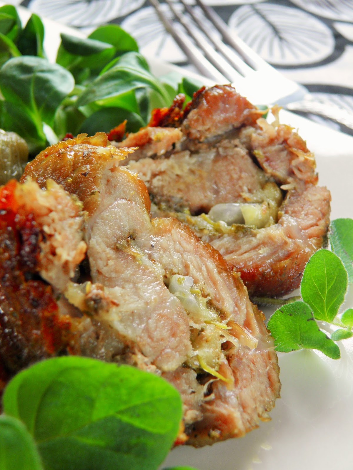 Smaczna obiadowa propozycja Sposób przygotowania Karkówkę rozbić, posmarować cienko musztardą, posypać pieprzem i solą, na każdy rozbity płat położyć plasterek szynki, połowę ogórka i pasek papryki, zwinąć roladki, dla pewności można spiąć wykałaczką....
