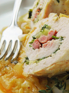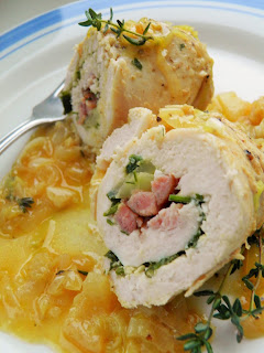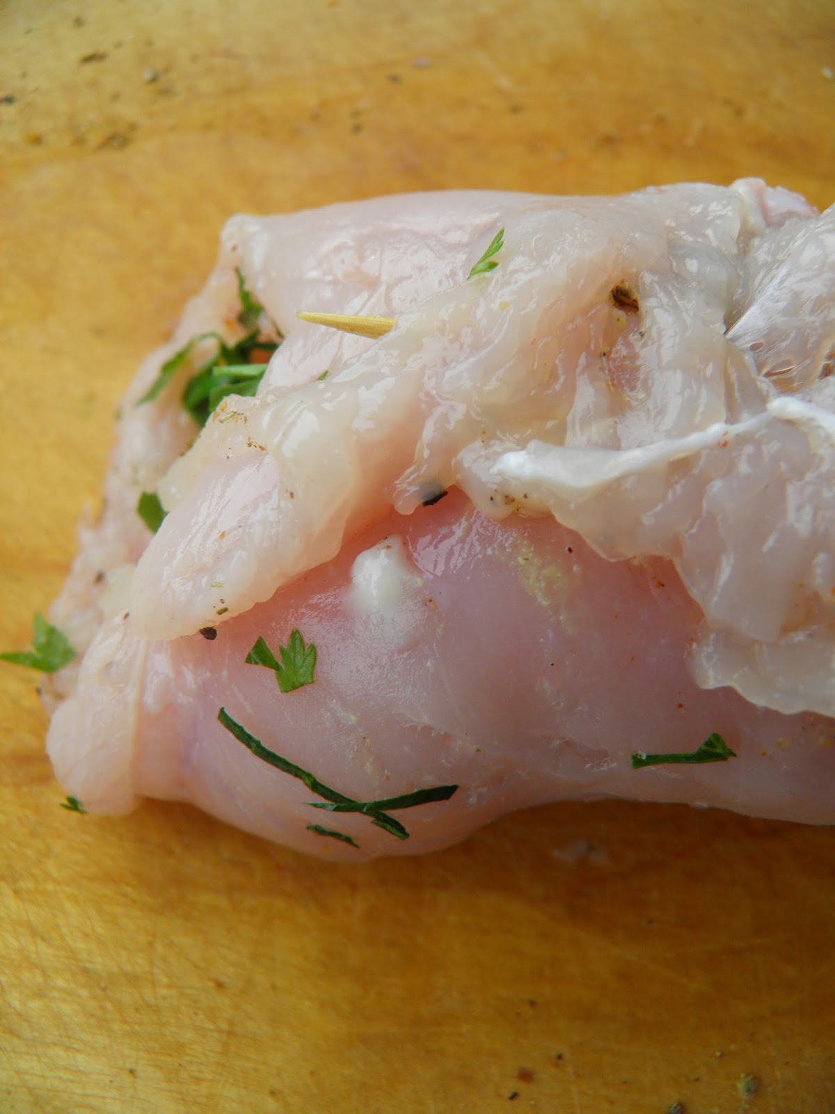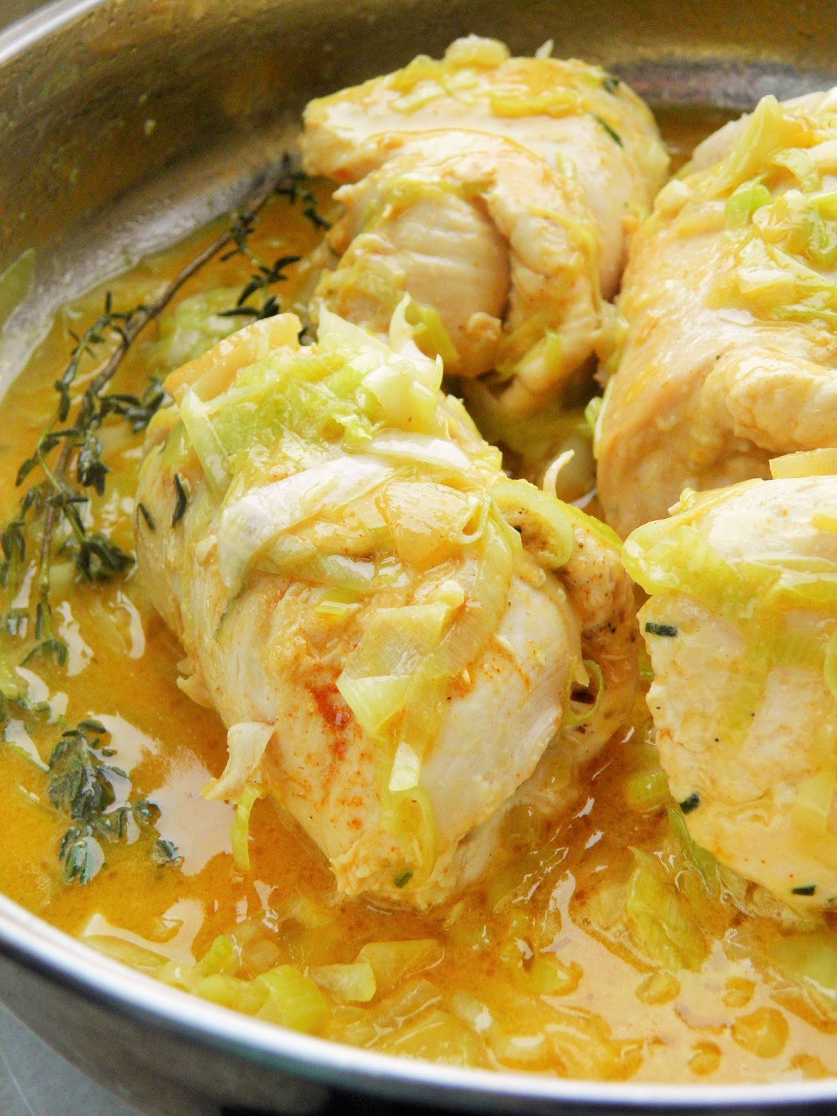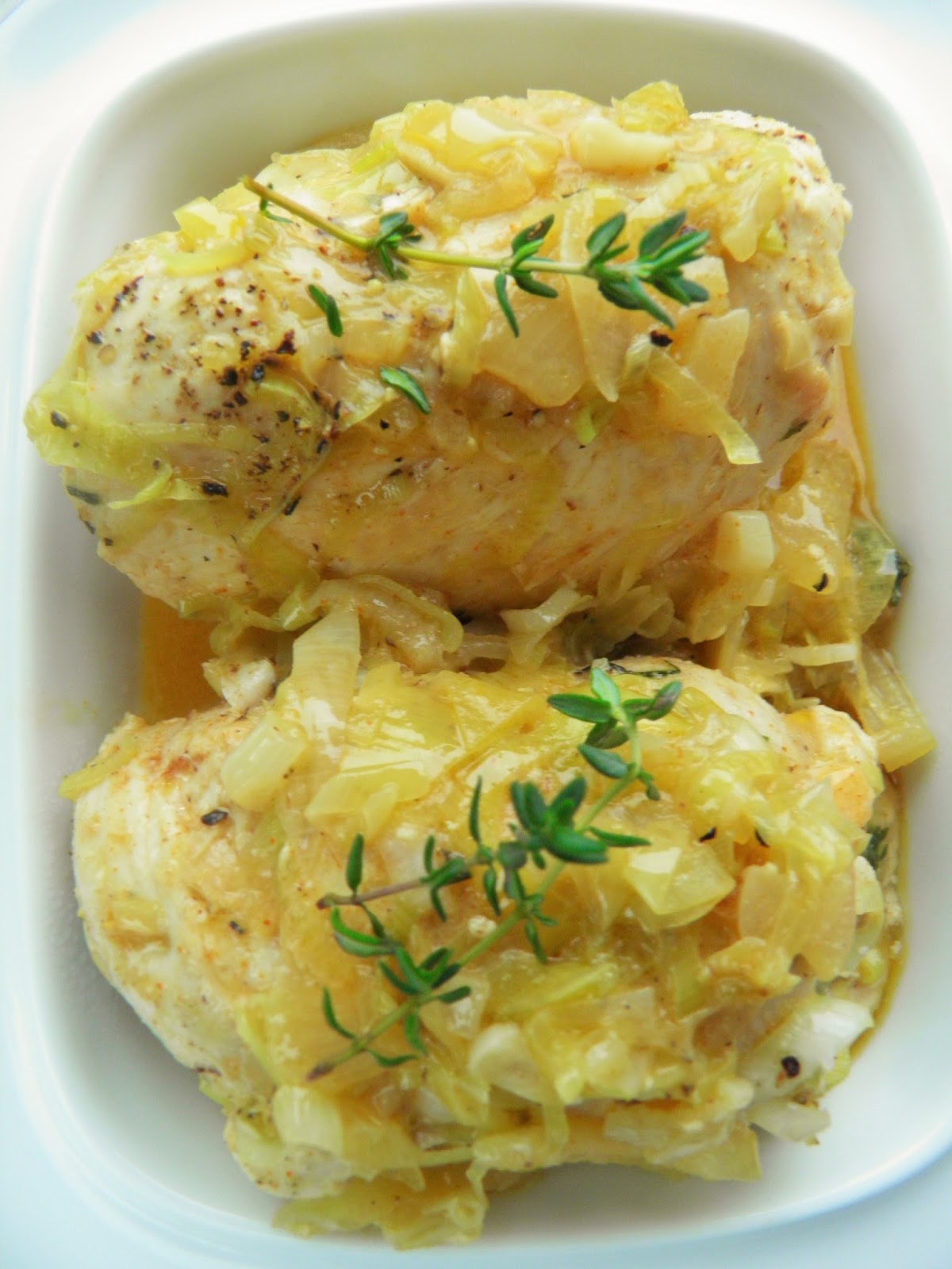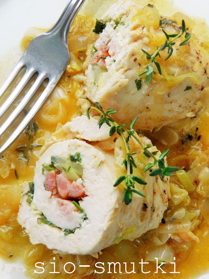 Roladki z kurczaka duszone z ziołami, porem i winem