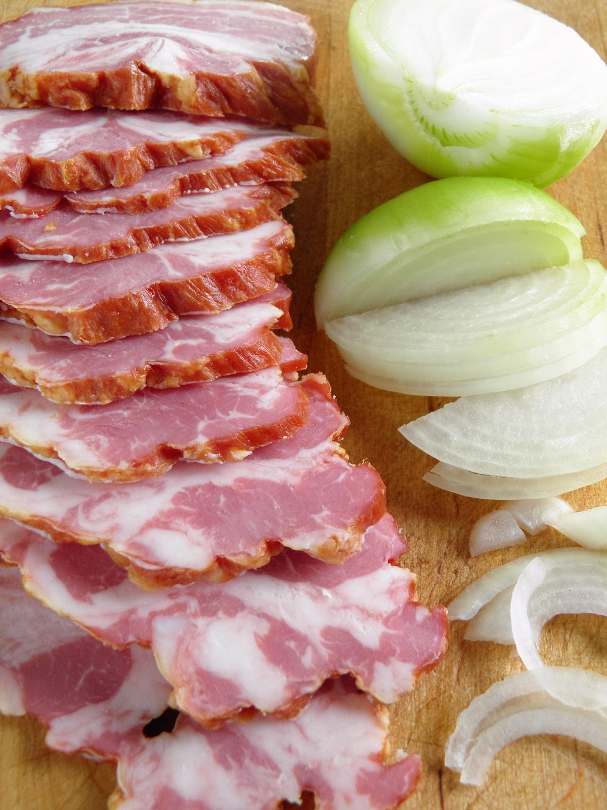 100 g. dobrej jakości wędzonego boczku (surowego lub parzonego)