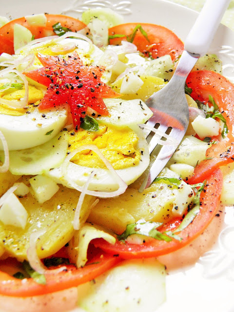 Sałatka z jajkiem, pomidorem i ziemniakami