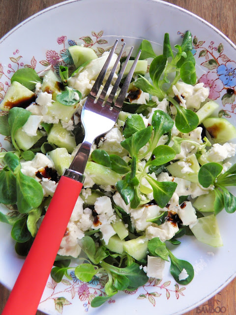 Sałatka z jajkiem, roszponką, ogórkiem i fetą