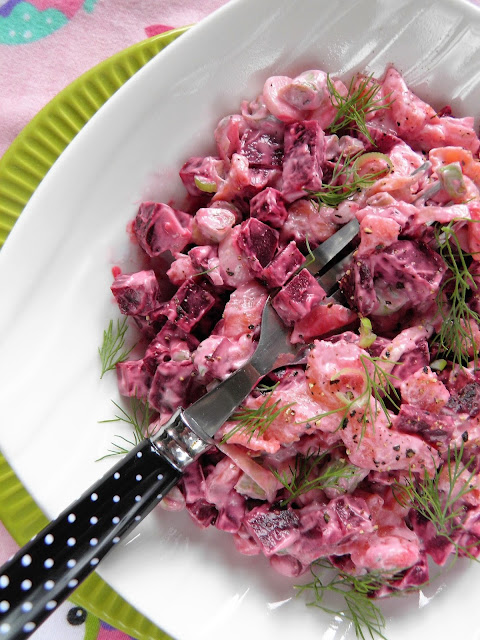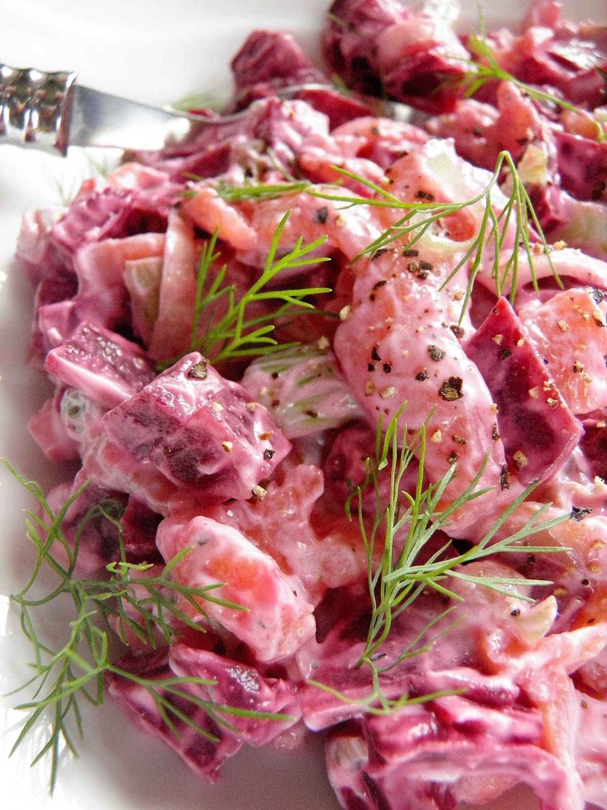 Sałatka z pieczonych buraczków z łososiem i szczypiorkiem