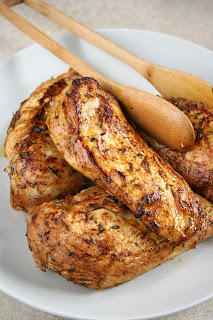 Ze składników marynaty mieszam pastę, nacieram nią kurczaka i odstawiam mięso na 2 godziny do lodówki. Następnie szybko obsmażam mięso z obu stron i przekładam na lekko natłuszczony papier na blasze - piekę kurczaka 25 minut w temperaturze 175 stopni C (pod przykryciem z folii aluminiowej). Upieczone mięso przekładam na talerz do wystygnięcia, a potem kroję je w kostkę.