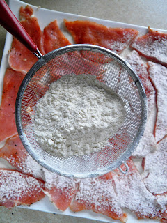 Mam dziś dla Was rewelacyjną radę, jak ułatwić sobie smażenia mięsa np. na gulasz :) Olśniło mnie dziś i pewnie będę tak robić już zawsze, bo ten sposób jest banalnie prosty, a oszczędza czasu i bałaganu w kuchni. Otóż - wiemy, że aby mięso w gulaszu czy w sosie było pyszne, warto oprószyć je przed smażeniem mąką (powoduje ona, że mięso ładnie się zarumieni, i sos będzie miał piękny kolor i dobrą konsystencję). Do dziś robiłam to w taki sposób, że pokrojone w kawałki mięso lekko panierowałam w mące na płaskim talerzyku. Nie zawsze udawało się zachować porządek na blacie, oj nie zawsze. A dziś, w tę piękną, słoneczną sobotę (upalną prawdę mówiąc - na szczęście coraz bardziej się chmurzy i zaraz pewnie spadnie deszcz) wymyśliłam, by sobie pomóc i mięso oprószyć mąką za pomocą sitka! Może tak robicie, nie wiem, ale jak dla mnie to naprawdę wspaniałe odkrycie :)