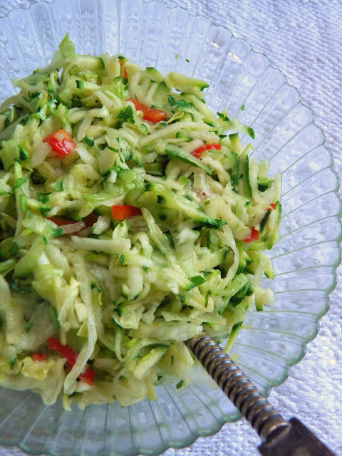 Lekka i orzeźwiająca surówka do obiadu ze świeżym ogórkiem, słodką morelą, czerwoną cebulą dla lekkiego zaostrzenia smaku, koperkiem i ziarnami słonecznika.Winegret stanowi jedynie oliwka, sok z cytryny, sól oraz szczypta cukru, który wydobywa smaki.* ...