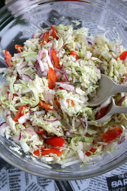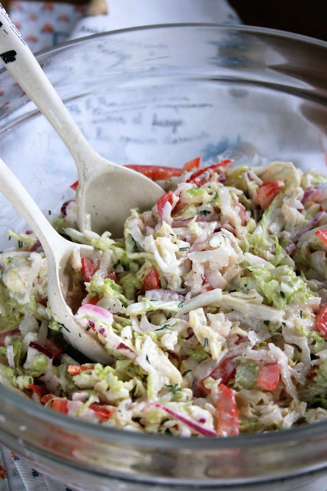 Surówka z kapusty pekińskiej, białej rzodkwi i czerwonej papryki