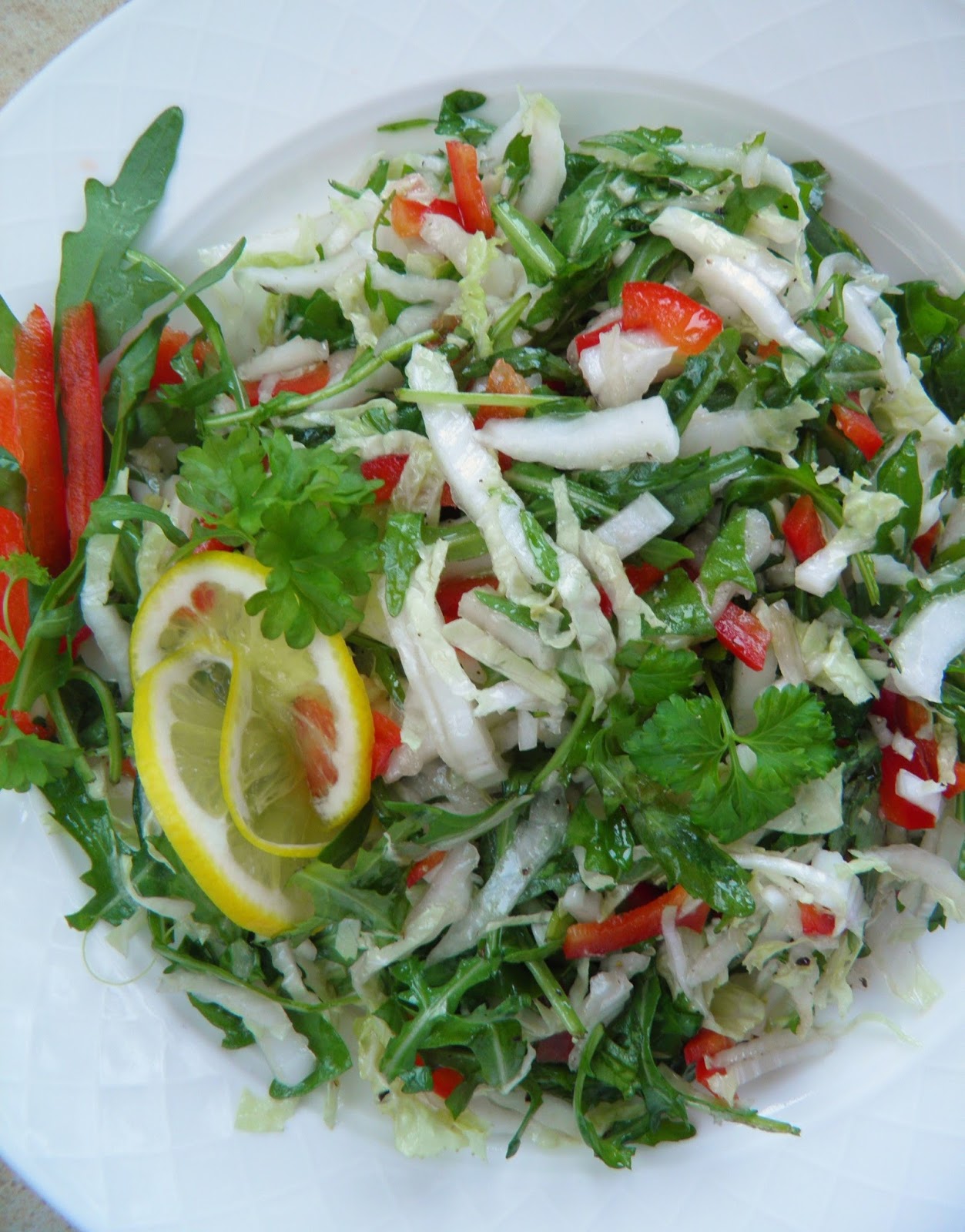 Surówka z rukolą, kapustą pekińska i czerwoną papryką