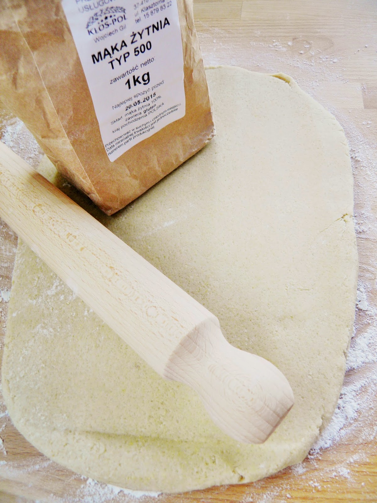 W misce siekam mąkę z cukrem, masłem i żółtkami, dodaję śmietanę i zagniatam jednolite ciasto. Gdy składniki się połączą, przekładam ciasto na podsypaną mąką stolnicę i rozwałkowuję je w prostokąt wielkości blachy. Przekładam ciasto na blachę wyłożoną papierem i wstawiam do piekarnika nagrzanego do 185 stopni C. na 25-30 minut ( ciasto ma się lekko zezłocić). W tym czasie umyte jabłka kroję na pół, wykrajam gniazda nasienne i dalej kroję na cienkie plasterki. Układam plasterki jabłek na podpieczonym spodzie.