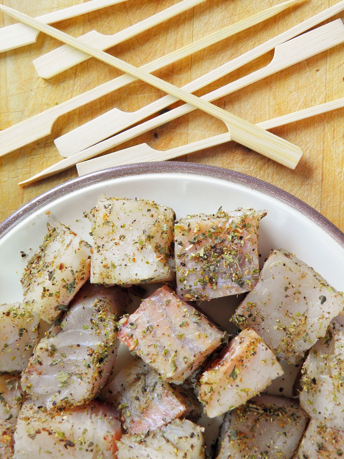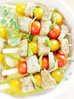 Szaszłyczki z dorszem, pomidorkami i bazylią
