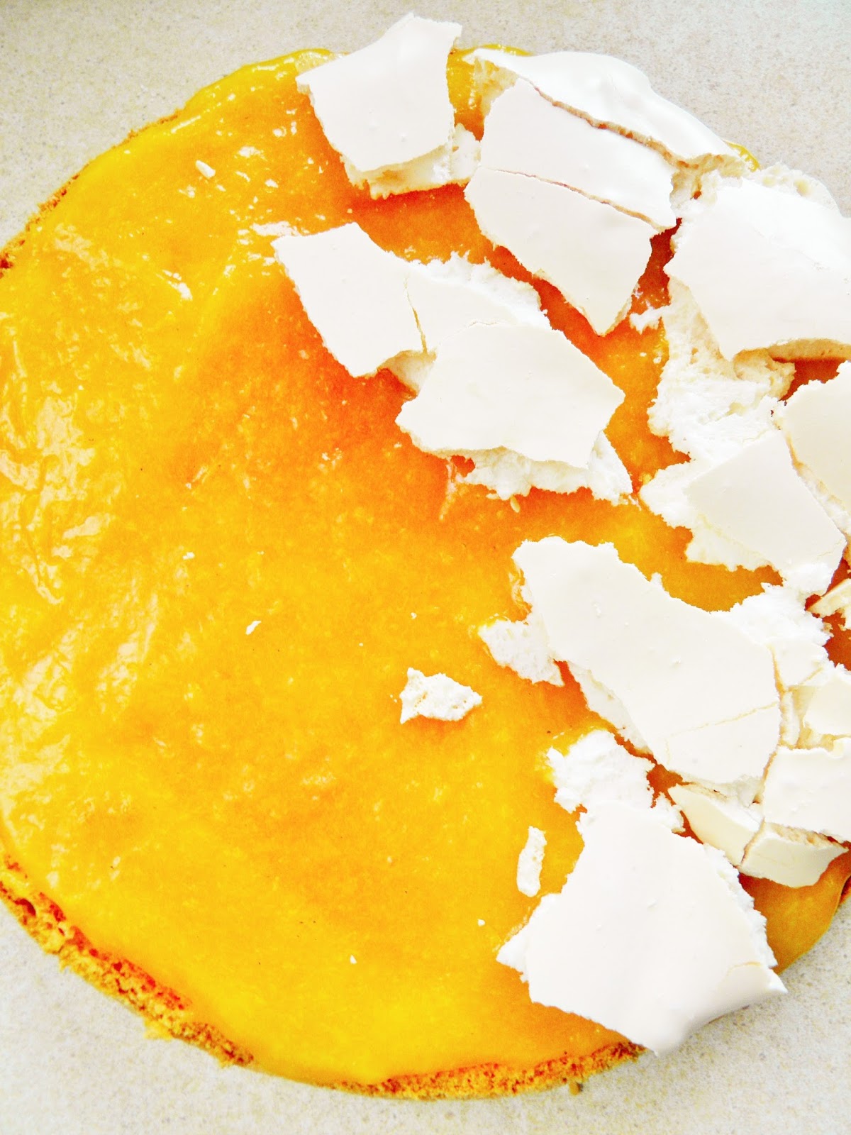 Tort wyszedł wysoki i bardzo okazały. Bardzo odpowiadał mi smak, tort nie był również zbyt słodki - świeżości dodały truskawki i lekko kwaskowaty mus brzoskwiniowy. Beza stałą się przyjemną pianką, a wszystko łączyła delikatna masa śmietanowa.