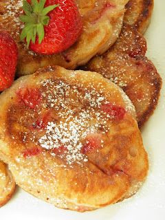 W sezonie truskawkowym chociaż raz trzeba zrobić takie truskawkowe placuszki: są delikatne i bardzo smaczne. Oprószyłam je tylko pudrem, ale by szaleństwo było większe, można podać je z musem truskawkowym.