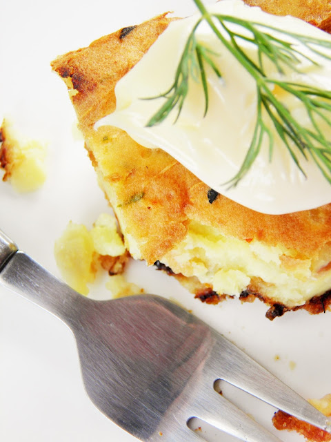 W sumie to takie pyszne, że można już nie jeść na obiad nic więcej - choć przygotowałam te ziemniaczki jako dodatek do smażonej ryby. Są kremowe, wprost aksamitne w środku, a wszystko skrywa apetycznie rumiana, chrupiąca skórka. Kleksik majonezu, jogurtu lub jakiegoś sosu, troszkę koperku - i ta zapiekanka smakuje wprost niebiańsko.