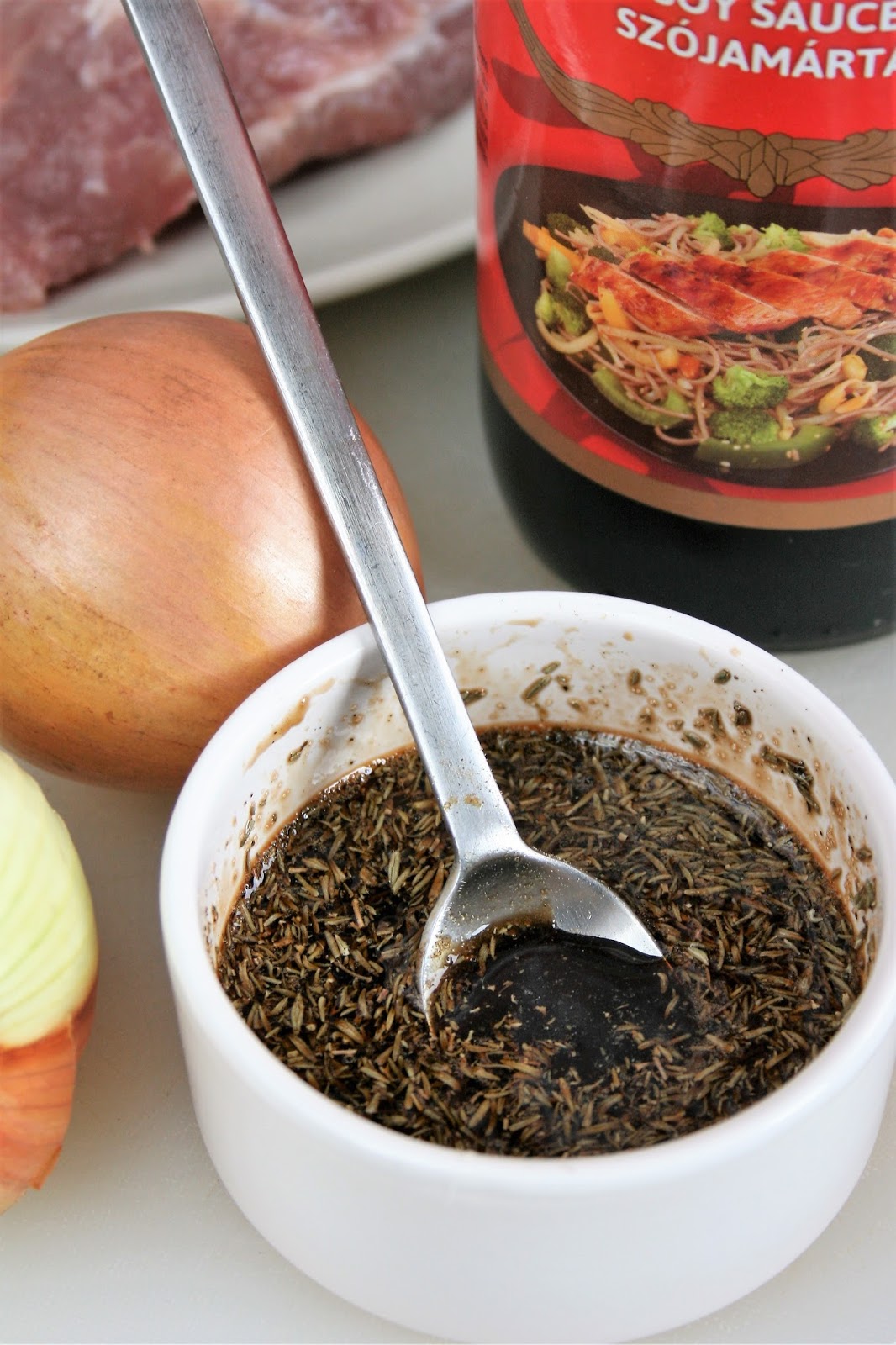 Pieczeń ze schabu z miodowo – tymiankowej marynaty
