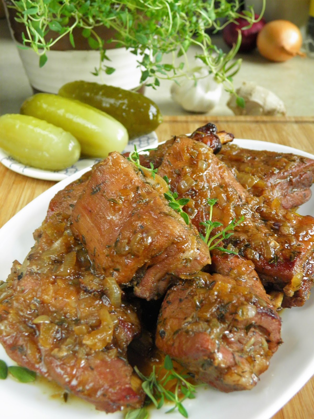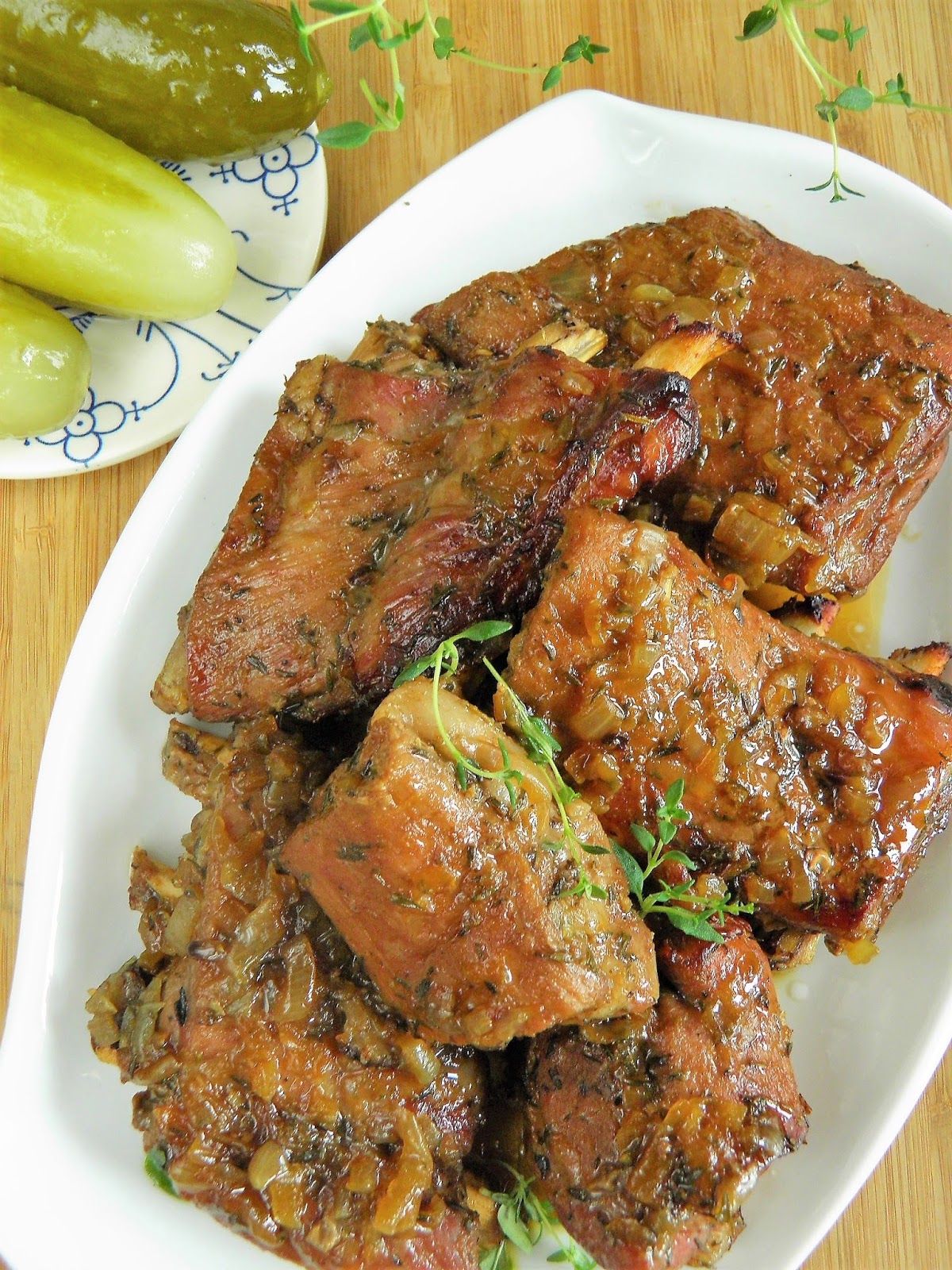 Uwielbiam taki świąteczny spokój jak dziś, gdy już cała krzątanina za mną, i można napawać się błogim nicnierobieniem. Zwłaszcza że ostatnio tydzień był dla mnie maksymalnie ciężki, spałam ledwie po kilka godzin. Nawet nie przeszkadza mi, że co chwilę za oknem deszcz, bo choć mieliśmy w planach spacer po łące, równie mocno cieszy mnie czas w domu z mężem, z muzyką i zapachem z piekarnika. A pachnie z niego pięknie, bo oto szykują się wspaniałe żeberka marynowane w miodzie, sosie sojowym, balsamico i tymianku. Będzie pysznie, więc od razu opowiem Wam, jak je przygotowałam.