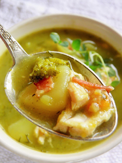 Zupa jest jak kawałek lata, bardzo esencjonalna i pełna smaków, które odkrywa się po kolei w każdej łyżce. Bardzo lubię takie zupy, na pół zmiksowane, ale także z kawałkami warzyw.