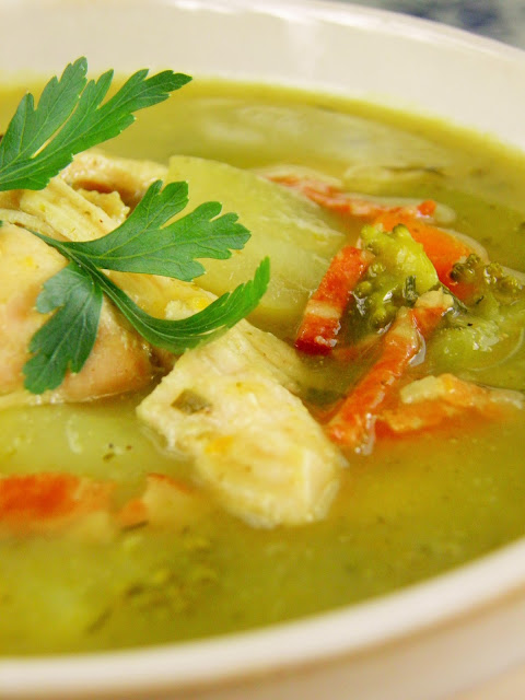 Zupa z brokułów z kurczakiem, boczkiem, curry i bazylią