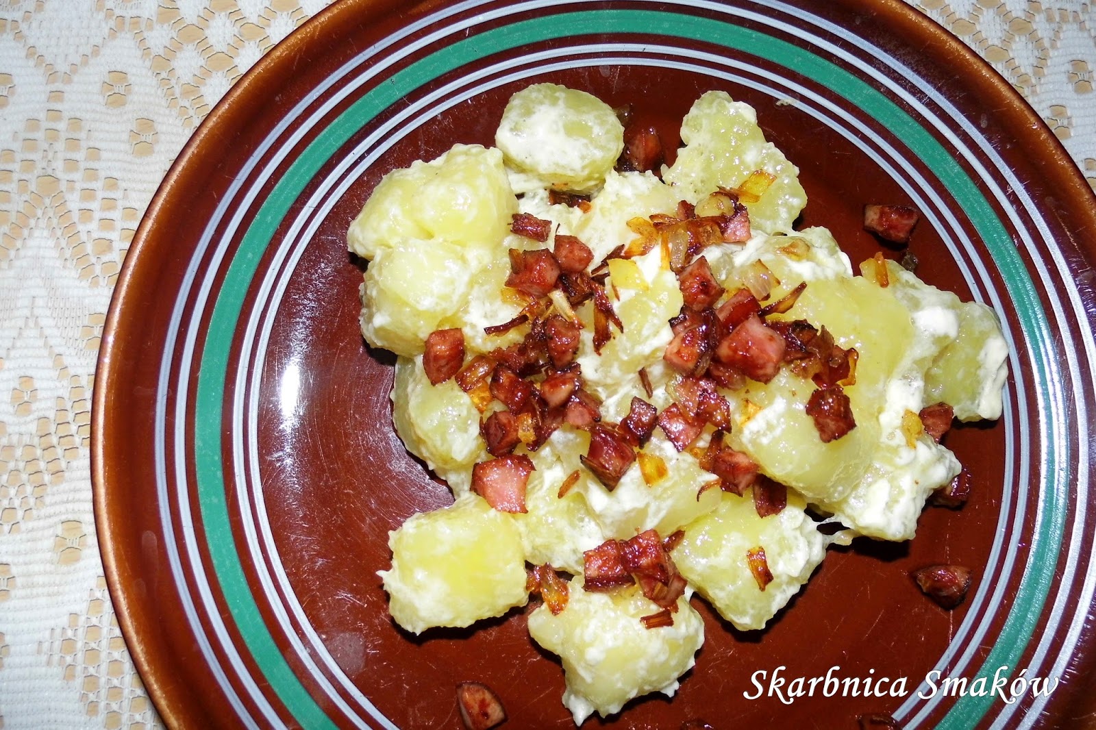 Kluski z serem przełożyć na talerze i okrasić je cebulą z boczkiem.