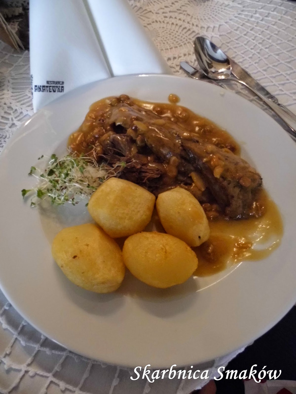 Miałam też okazję spróbować pieczonej gęsi z sosem żydowskim, którą zamówiła nasza "niekulinarna" koleżanka.