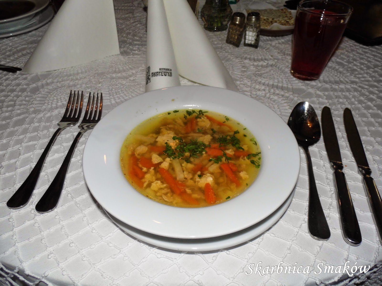 Z menu na pierwsze danie wybrałam rosołek po żydowsku - byłam bardzo ciekawa czy różni się czymś od rosołu, który znamy z polskich stołów.
