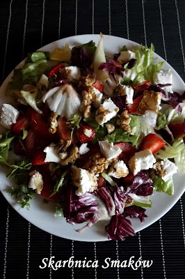 Sałatę polewamy z wierzchu niewielką ilością octu balsamicznego i gotowe.
