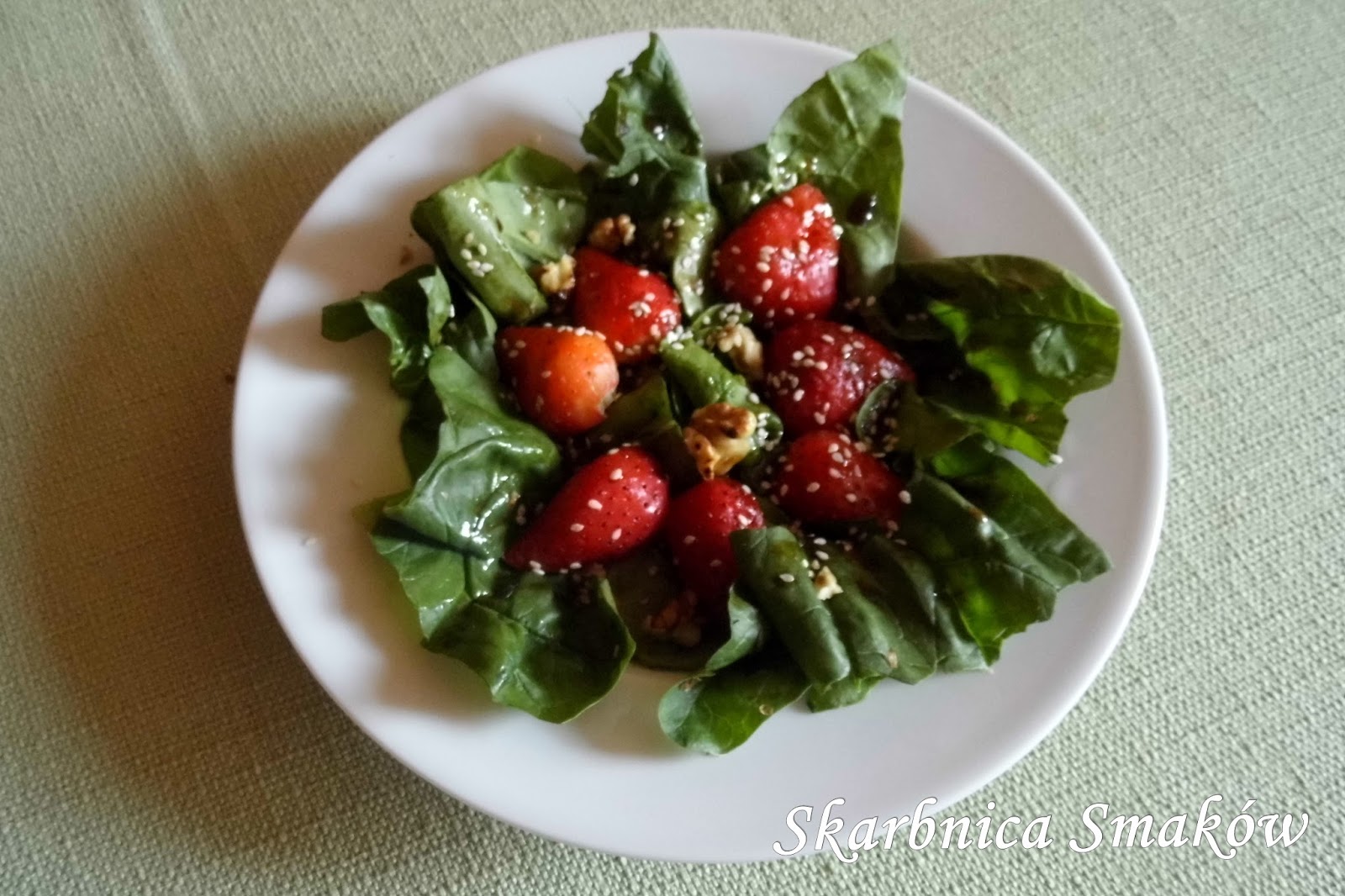 Połączenie świeżego szpinaku, truskawek, orzechów włoskich i dressingu na bazie oliwy i octu balsamicznego, to prawdziwa kulinarna uczta.