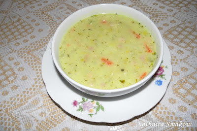 Ziemniaki obrać pokroić w kostkę, dodać do gotującej się zupy.