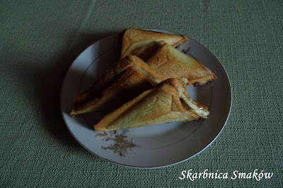 Kanapki wkładamy do rozgrzanego tostera, zamykamy go i pieczemy aż tosty będą rumiane.