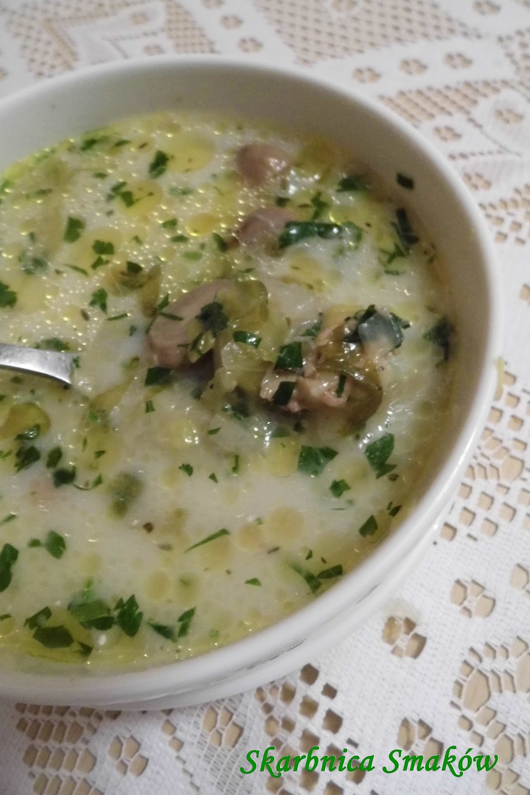 Zupa ugotowana na bazie zielonych warzyw, w jej skład wchodzą: bób, kapusta włoska, cebula i por. By jeszcze bardziej ją zazielenić, dodałam od siebie posiekaną natkę pietruszki.