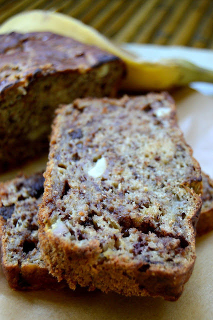 Banany mam w domu zawsze, dlatego upieczenie chlebka bananowego był kwestią czasu. Przepis troszkę zmodyfikowany, bo absolutnie bez cukru , oprócz kawałków czekolady.Połączenie ciasta bananowego i topiącej się czekolady jest wprost nieziemskie ! A zapach niosący się z piekarnika jak z najlepszej piekarni.