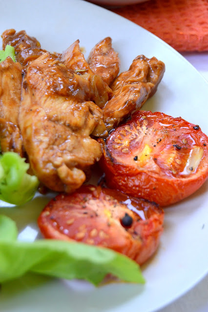 Pieczone pomidory :- 4 średniej wielkości dojrzałe pomidory