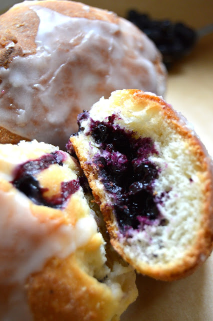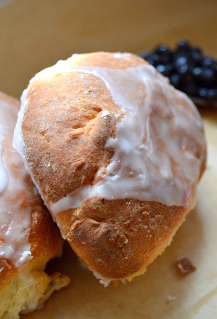 Mąkę łączymy z drożdżami ( jeśli mamy świeże drożdże robimy zaczyn) oraz szczyptą soli. Do tego wlewamy mleko, dodajemy jajko i wszystko mieszamy. Następnie dodajemy olej i pozostałe składniki . Wszystko zagniatamy aby uformować kulę ( jeśli za bardzo będzie się lepić można odrobinę podsypać mąką, jednak musi ono być miękkie i sprężyste). Odstawiamy do wyrośnięcia w ciepłe miejsce ( ok. 1 godzina).Jak ciasto wyrośnie ,lekko i krótko zagniatamy , dzielimy na ok. 13-15 kawałków. Formujemy kulki i odstawiamy do ponownego wyrośnięcia na ok. 15 minut. Z każdej kulki tworzymy jak placek dajemy ok. płaską łyżkę jagód sklejamy jak pierogi i lekko rolujemy ,aby dobrze je skleić i aby były smukłe. Gotowe jagodzianki układamy na blaszce wyłożonej papierem do pieczenia i odstawiamy na kolejne 45 minut do wyrośnięcia . Potem pozostaje już tylko je upiec w 220 stopniach przez 15 minut. Studzimy, lukrujemy i jemy.