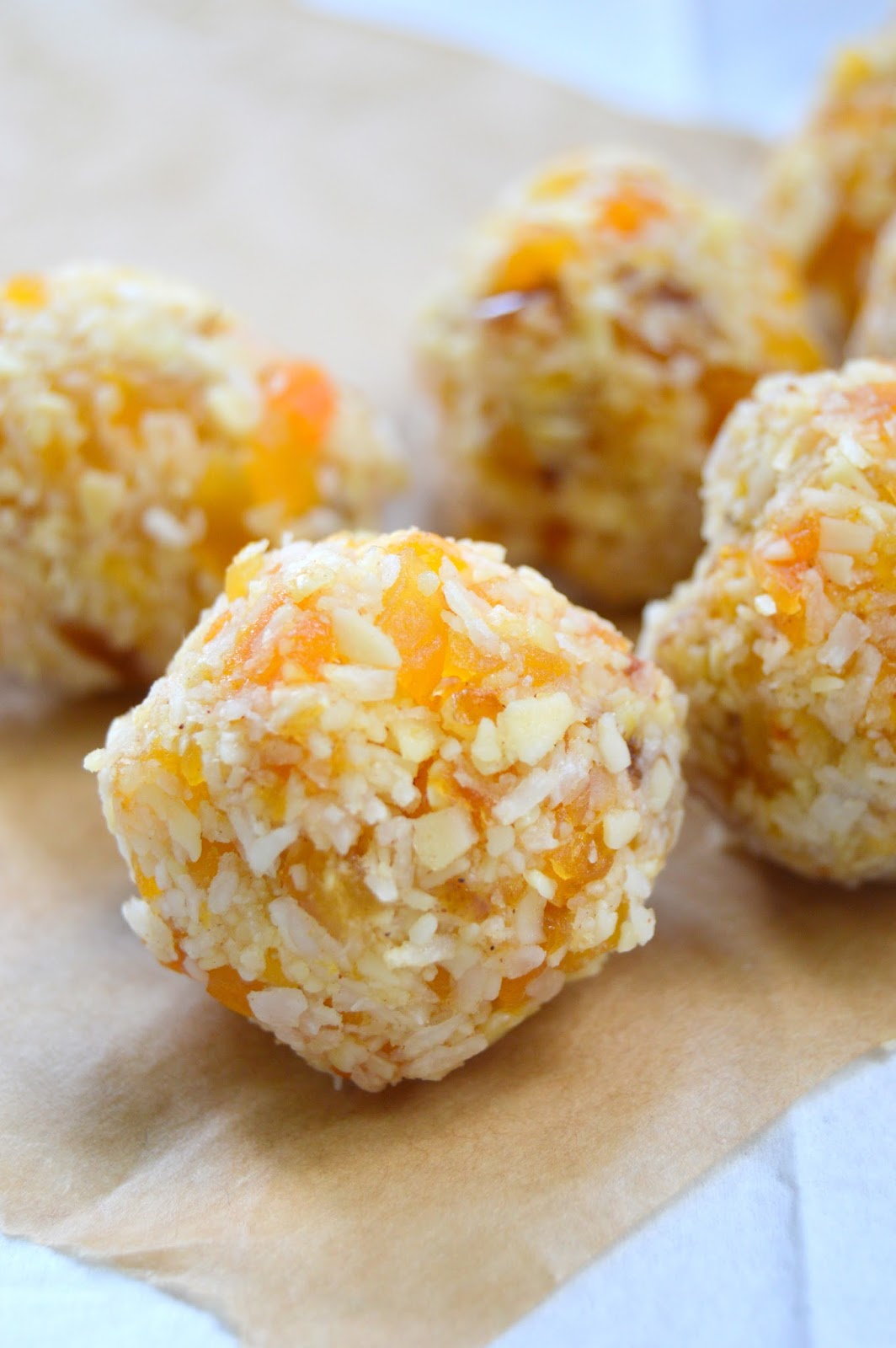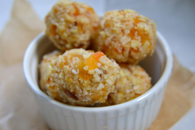 Jeśli natomiast nie mamy blendera ze specjalnym ostrzem , migdały możemy "zmielić" na drobno używając migdałów w płatkach, które wkładamy w czystą ściereczkę kuchenną i uderzamy o blat , aż do uzyskania pożądanej konsystencji. Morele i daktyle po prostu bardzo drobno kroimy ,a wiórki kokosowe dodajemy bez żadnej obróbki.