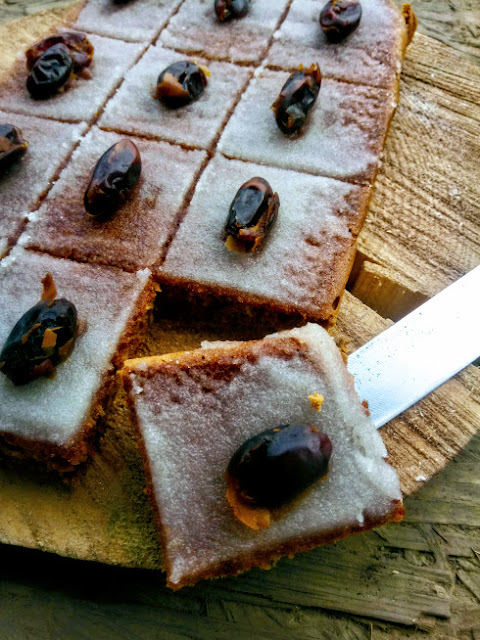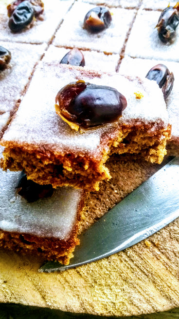 Daktyle zalewamy gorącą wodą i pozostawiamy na chwilę aby zmiękły. Następnie blendujemy kokos i daktyle w razie potrzeby podlewając pozostałą z moczenia wodą, dodajemy resztę składników i wszystko dokładnie miksujemy. Pieczemy na papierze do pieczenia 25 min w 170st.