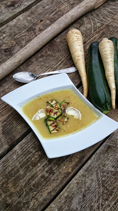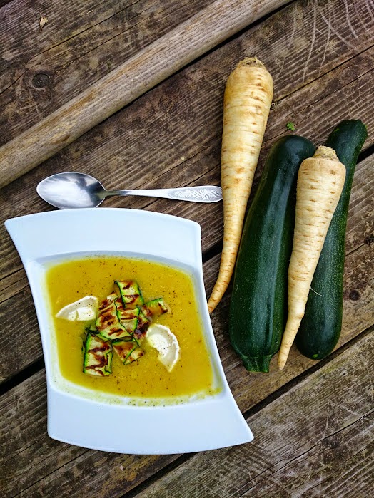 Dzisiejsza propozycja będzie troszkę nietypowa. Zaskakująca w smaku z nutką orientu. Pyszny aksamitny krem z cukinii doprawiony curry i cynamonem. Naprawdę smakuje wybornie. Polecam wszystkim wykorzystanie cukinii teraz kiedy sezon na nią w pełni. Im młodsza tym lepsza. Jest lekkostrawna, zawiera sporą dawkę potasu, magnezu i żelaza. DO TEGO MA TYLKO 15 kcal w 100g. Proponowana przeze mnie krem z cukinii świetnie smakuje z dodatkiem koziego sera.