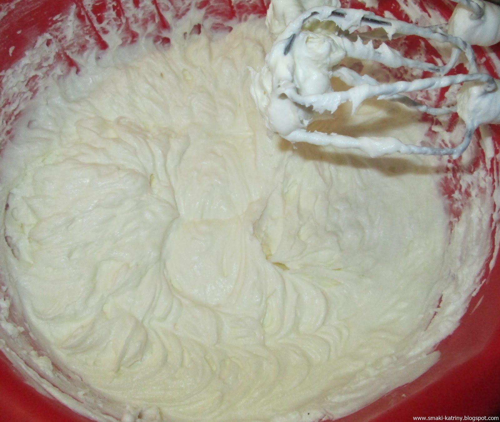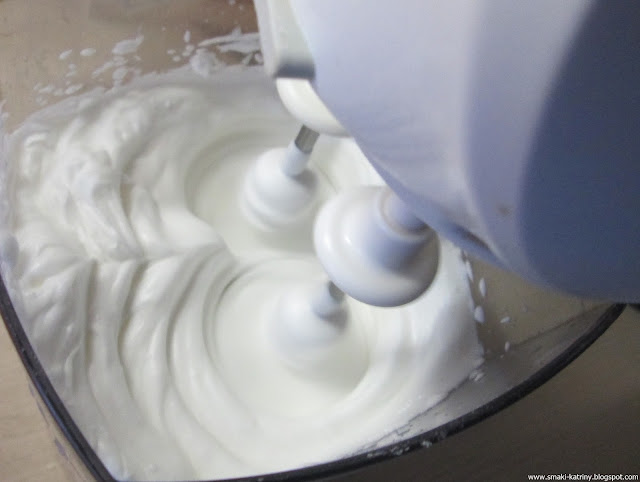 Wsypujemy proszek śnieżki i ubijamy wszystko do uzyskania puszystej konsystencji.