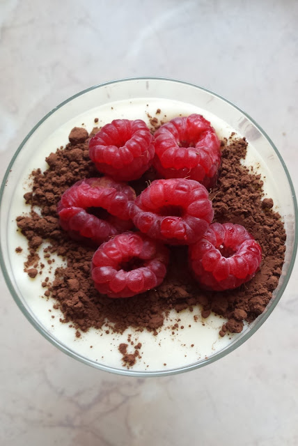 Dziś przepis na przepyszny (nie mocno słodki) mus z dodatkiem białej czekolady, malinami i kakao.