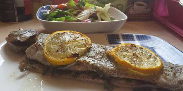 - 2 pstrągi (wypatroszone- dostępne zawsze w Lidlu, świeże)