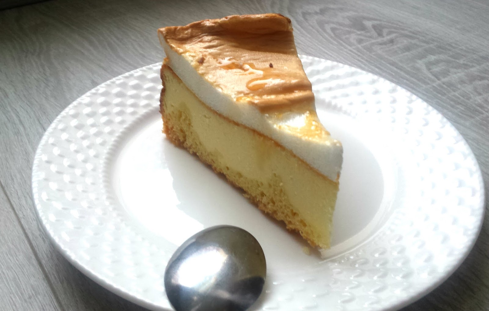 Tortownicę wykładamy papierem do pieczenia a boki smarujemy masłem. Wykładamy spód ciastem, a na wierzch wylewamy naszą masę serową. Pieczemy 1 h w temp 180 stopni (termoobieg). W między czasie ubijamy białka ze szczyptą soli. Pod koniec ubijania dodajemy powoli cukier. Po godzinie pieczenia wykładamy ubite białka na ciasto i pieczemy kolejne 15 minut, aż piana będzie delikatnie brązowa.