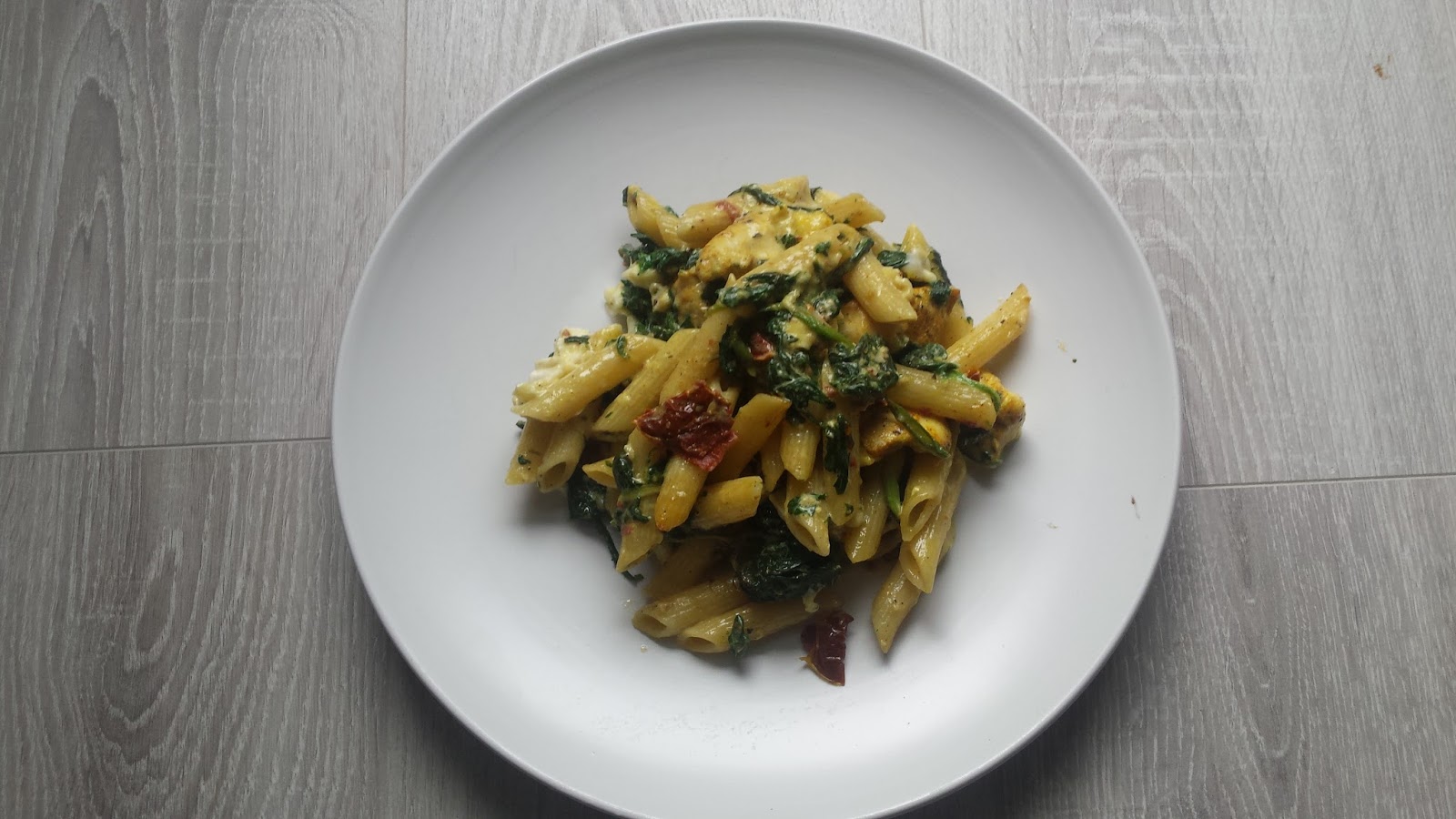 Mój pomysł na nią zawiera kurczaka w aromatycznej przyprawie curry, szpinak i suszone pomidory. A całość dopełniona jest sosem z dwóch serów :) Zapraszam do próbowania!