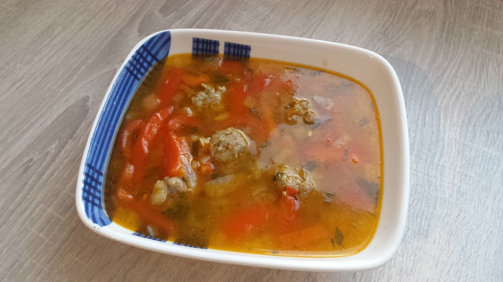 Rozgrzewająca zupka postawi na nogi o każdej porze roku. Pyszna, pełna warzyw z dodatkiem kulek z mięsa wieprzowego. Szybka do zrobienia, poleca się na obiadek :)