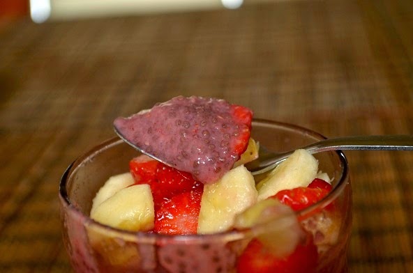 nocną owsiankę a'la pudding? Pisałam tam o zaletach nasion chia. Są doskonałym źródłem białka, żelaza, błonnika, kwasów tłuszczowych 3 i 6, witamin z grupy B. Teraz, gdy za oknem robi się coraz piękniej i temperatura powoli wędruję do góry warto zaopatrzyć się w paczuszkę magicznych kuleczek i przygotować sobie od czasu do czasu takie orzeźwiające śniadanie.