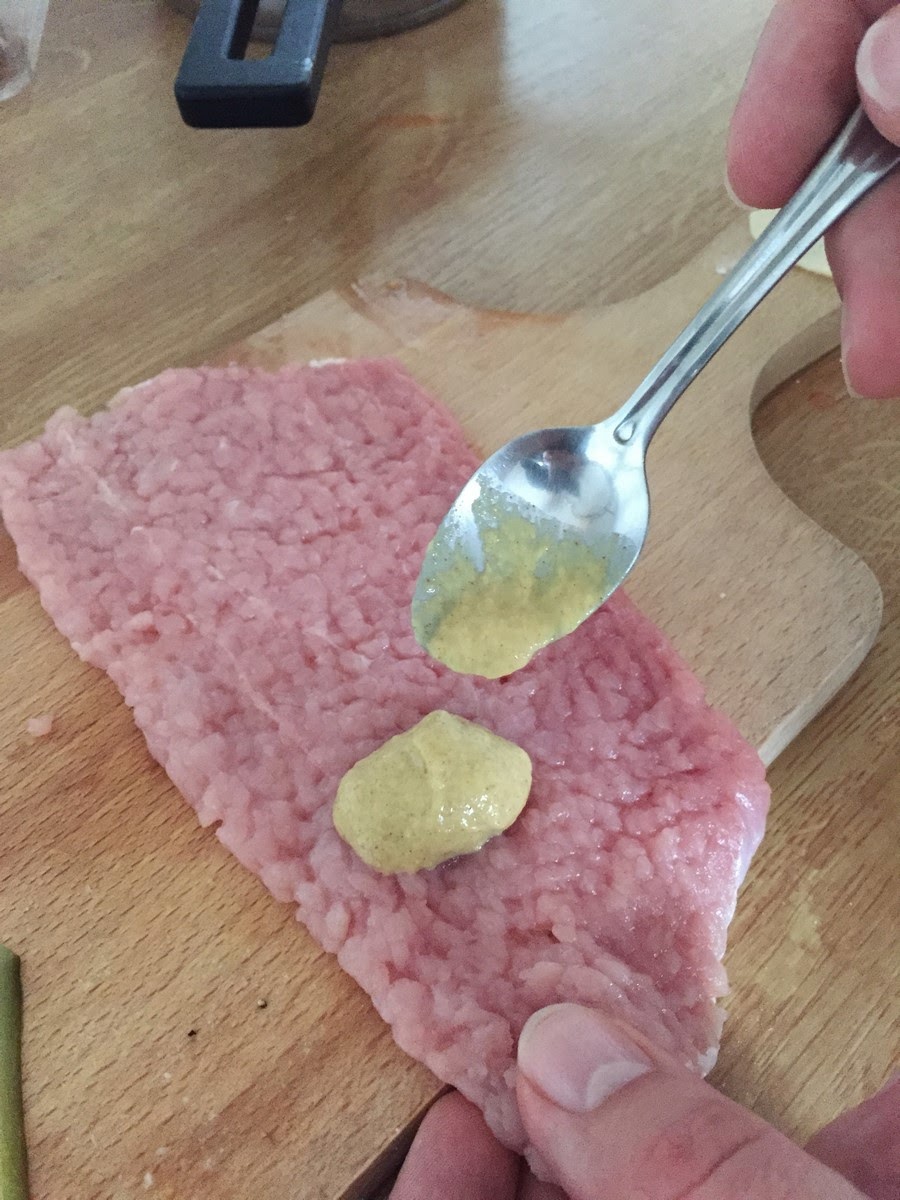 Druga wersja roladki smarujemy schab musztardą (rodzaj dowolny ja użyłem sarepskiej)