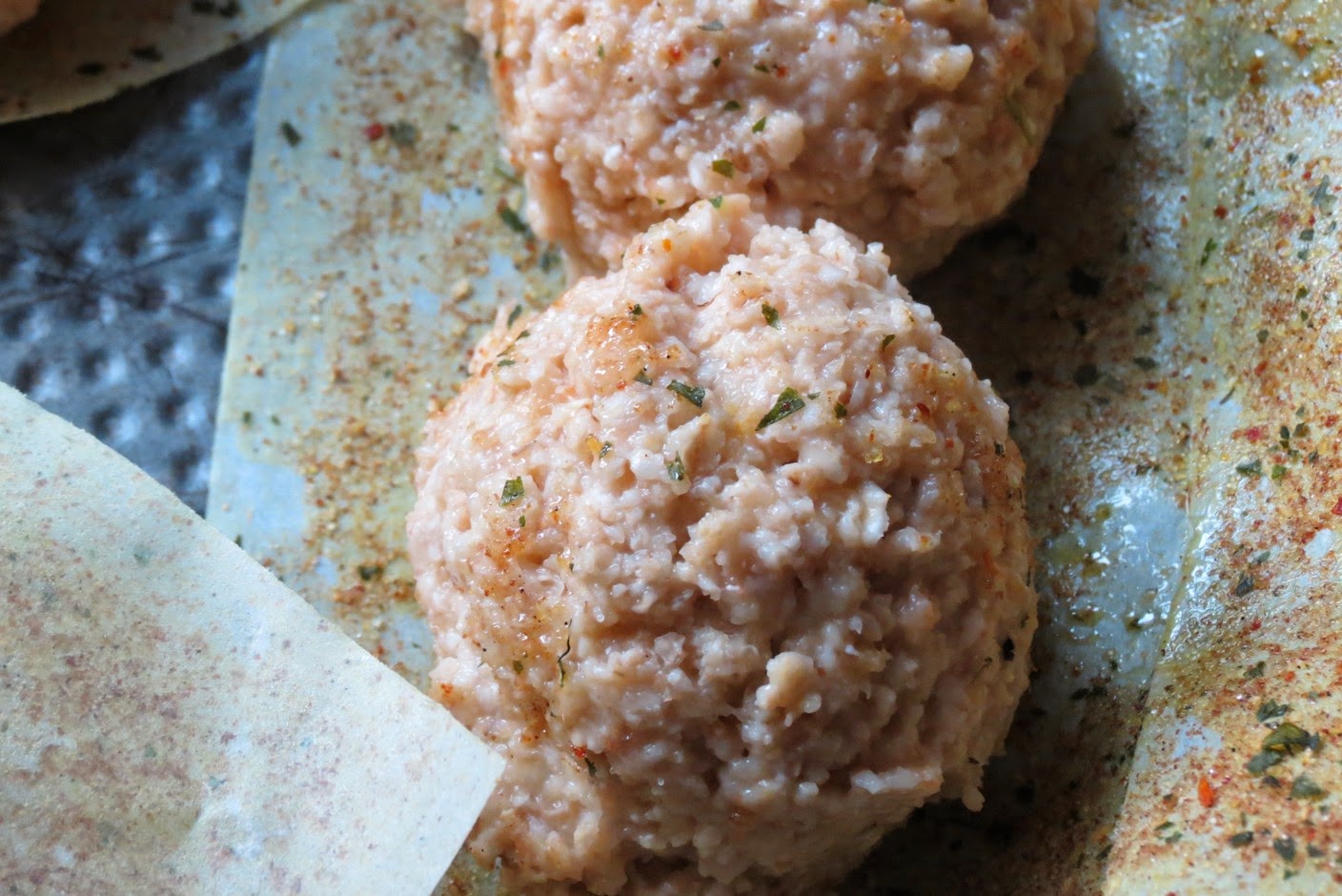 Kulki: Płatki zalać wrzątkiem, odstawić do naciągnięcia. Jak napęcznieją, dodać drobno pokrojoną cebulę, jajko, bułkę tartą, wszystko wymieszać i uformować małe kulki. Kulki układać na blaszce, na papirusie obsypanym przyprawami. Wstawić do piekarnika z termoobiegiem na 160 stopni. Piec 20 minut.