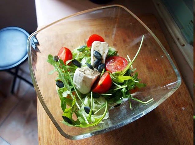 I czasami warto bazować na podstawowych produktach, dodając coś nowego. Tym razem padło na pestki dyni. Sałatkę przyprawiłem po prostu solą i pieprzem.