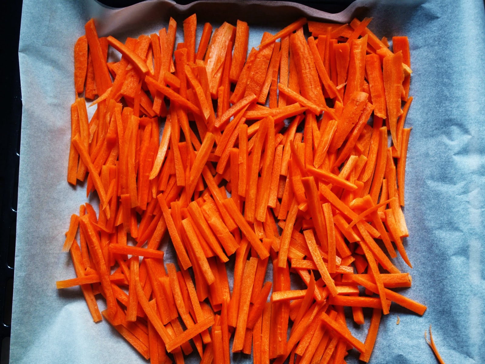 Przygotowując się do zrobienia tej potrawy musicie mieć oczywiście marchew. Trochę się poirytowałem przy jej krojeniu, gdyż jest to odrobinę uciążliwe... Postarajcie się o to, żeby Wasz nóż był ostry, albo od razu skorzystajcie z maszynki do krojenia.