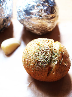 Zanim włożycie ziemniaki do piekarnika, porządnie je umyjcie z całego syfu, który się na nim znajduje. Następnie ponacinajcie je, ale nie do końca. W każdą wolną przestrzeń posypcie przyprawami (według własnego uznania). Pamiętajcie, że sól jest tutaj ważna, żebyście nie musieli dosalać przy konsumpcji. W nacięcia, oczywiście w miarę możliwości, włóżcie ser żółty i kawałek czosnku. Na sam koniec owińcie każdego ziemniaka osobno w foli z odrobiną masła.Ziemniak w 200 stopniach powinien zrobić się w przeciągu godziny.