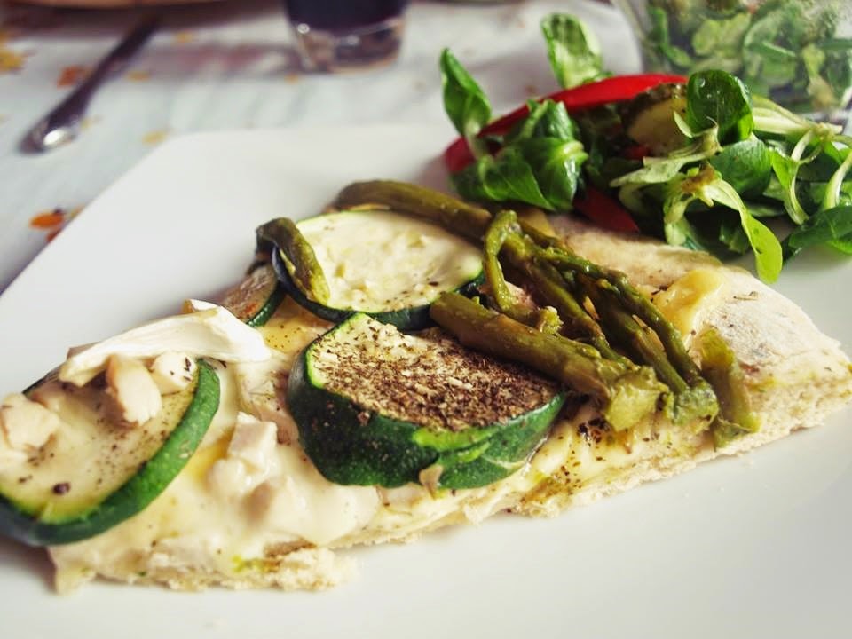 Każdy ma taki dzień dziecka, na jaki zasłużył. Ja ten beztroski dzień umiliłem sobie pizzą z cukinią, szparagami i serem pleśniowym. Właściwie niczego więcej do szczęścia mi nie potrzeba.