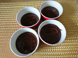 Foremki nasmarować masłem i oprószyć mąką. Czekoladę i masło rozpuścić w kąpieli wodnej lub na małym ogniu w rondelku. Jajka z cukrem rozmieszać trzepaczką lub mikserem na jednolitą masę, dodać mąkę. Ostudzoną czekoladę dodać do jajek. Masa zrobi się dosyć gęsta. Następnie przełożyć masę do foremek i wstawić do piekarnika nagrzanego do 200 stopni na 7-8 minut.