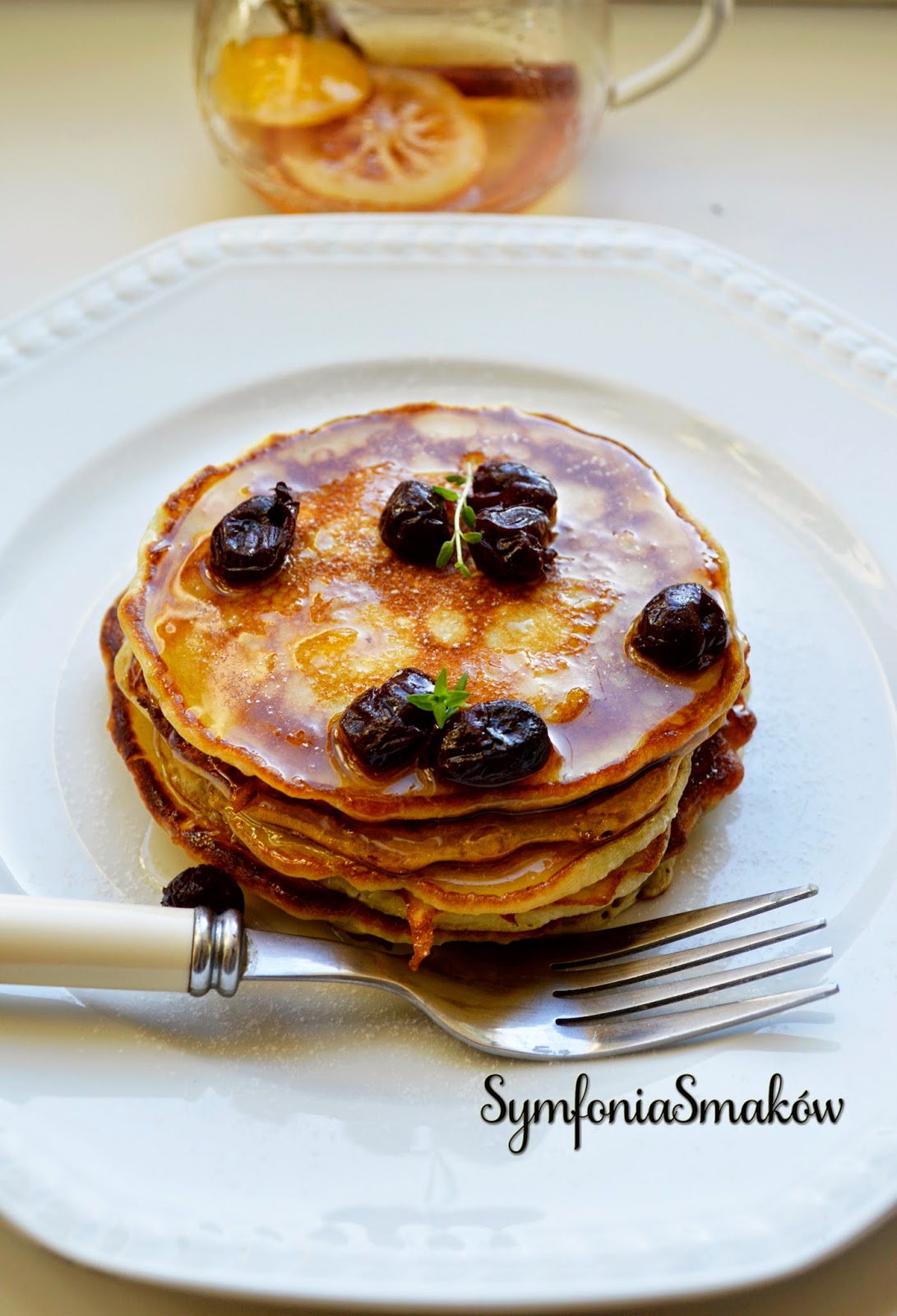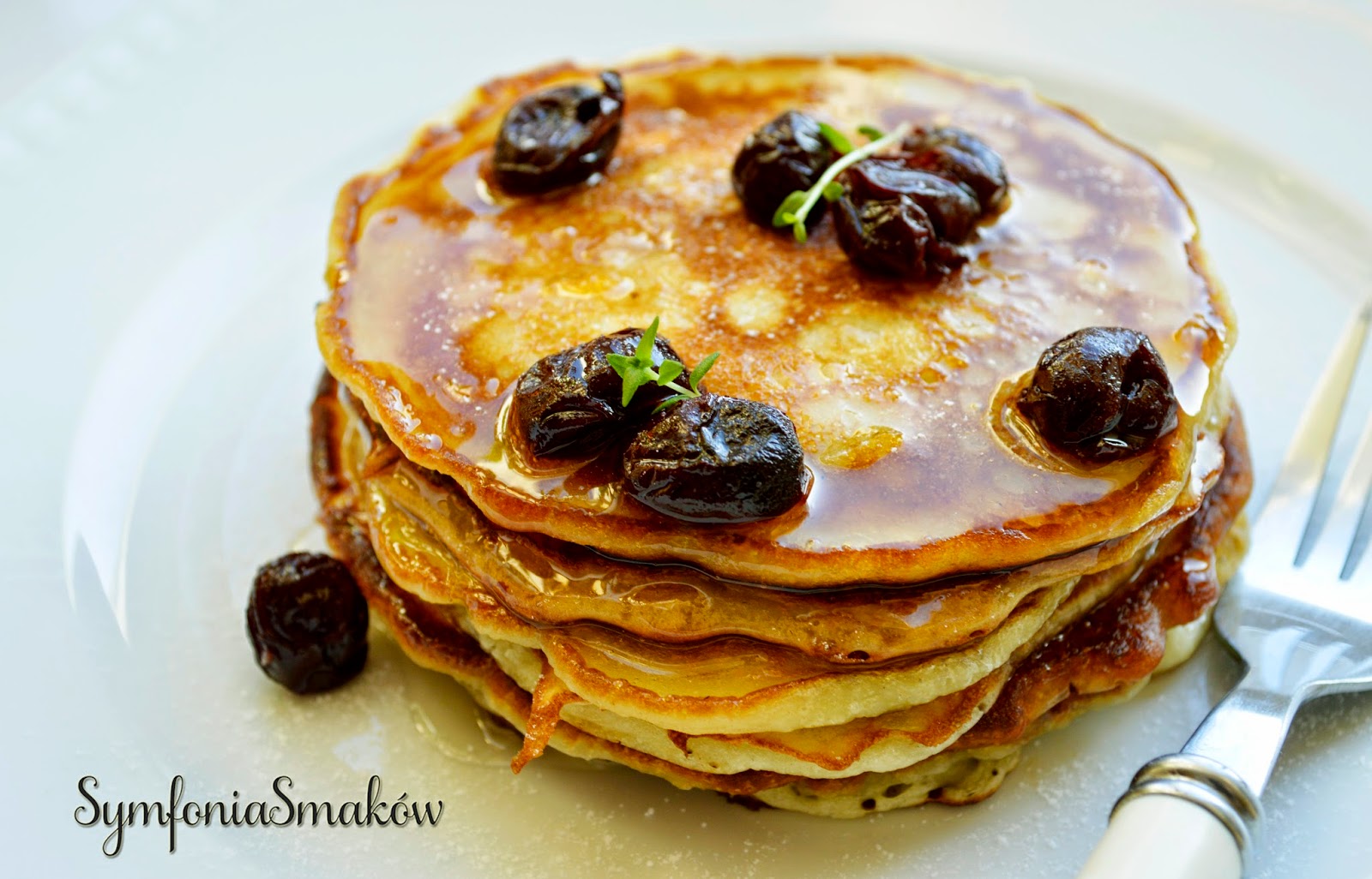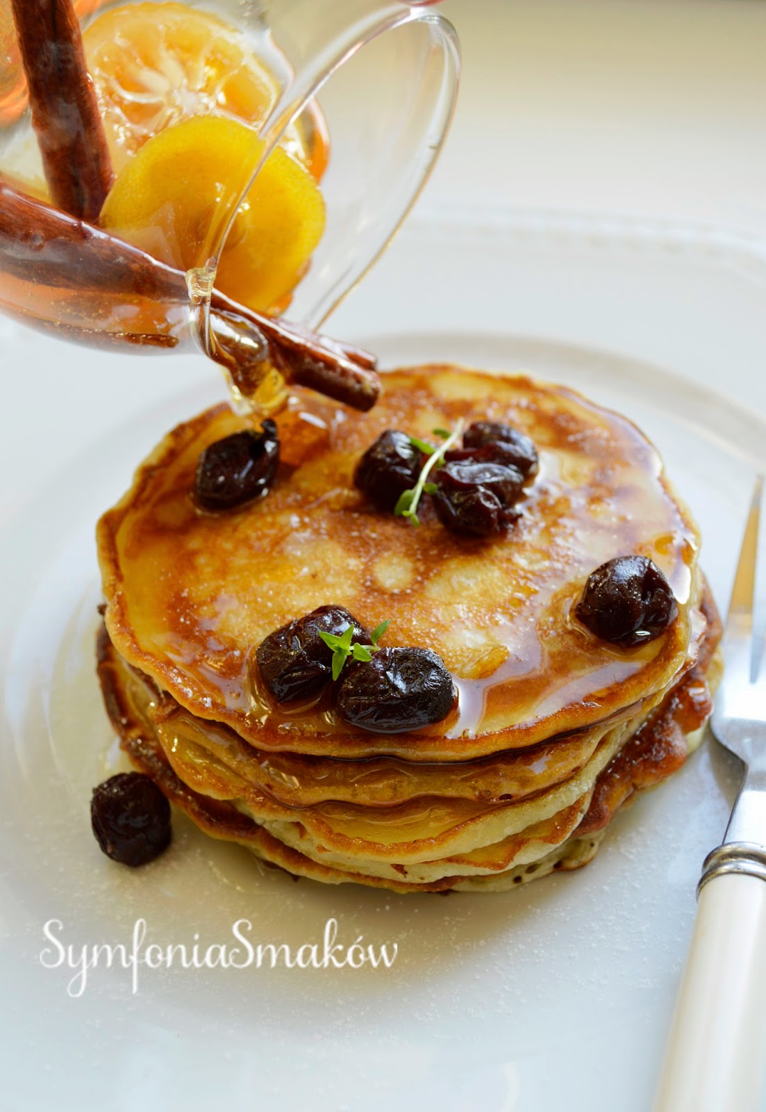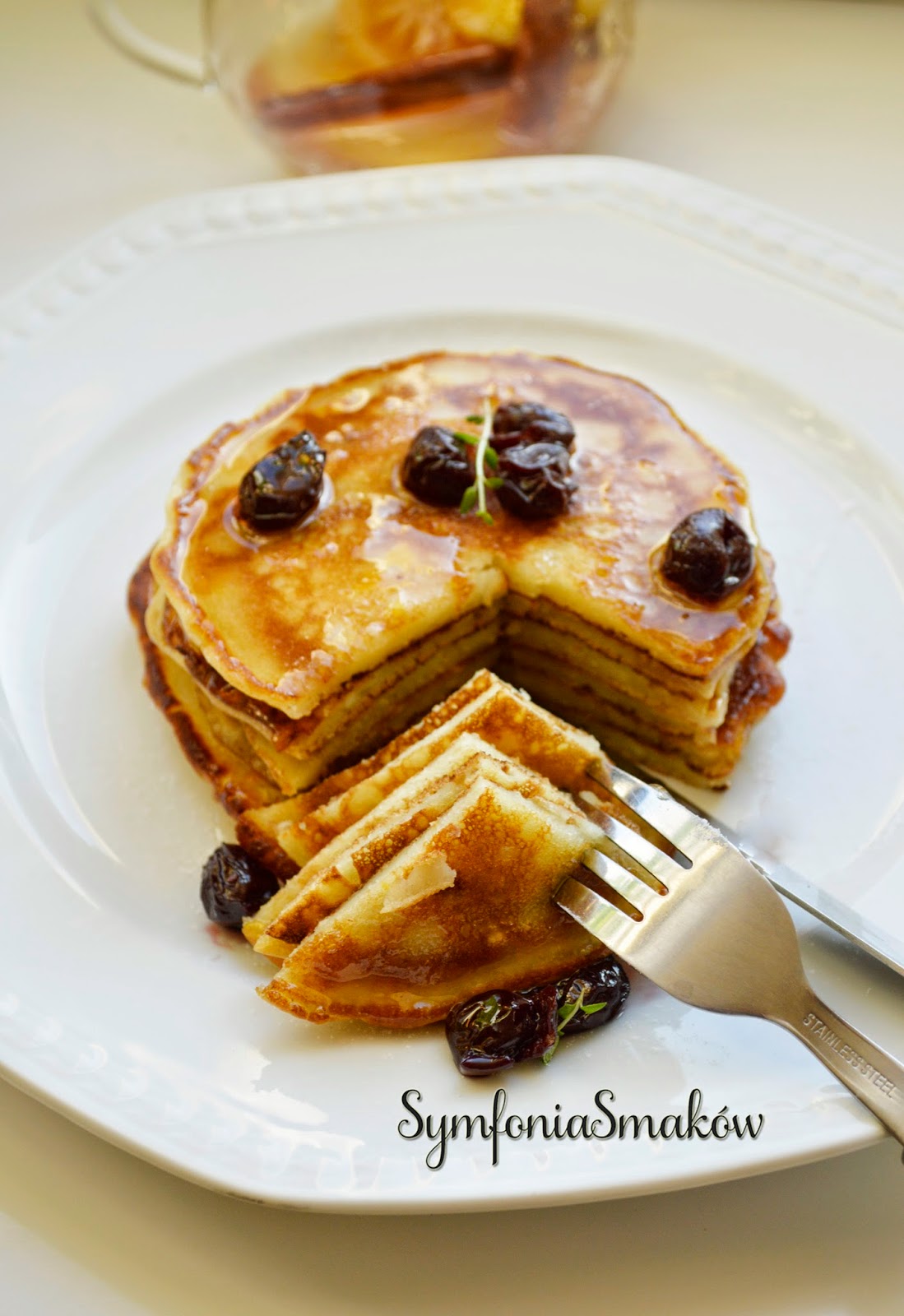 - Syrop zostawiamy do ostygnięcia, przelewamy do ceramicznego lub szklanego naczynia(np. dzbanuszka) i polewamy nim ciepłe pankejki. Podajemy warstwowo z ulubionymi dodatkami - u nas przesłodkie wiśnie z babcinego soku oraz świeży tymianek. Smacznego :)