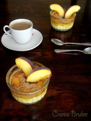 Przed samym podaniem posypać wierzch kremu cukrem (około 1 płaska łyżka na 1 porcję), rozprowadzić cukier, by utworzył równą warstwą na powierzchni deseru. Opalić palnikiem, lub wstawić na chwilę do piekarnika nagrzanego do 180 stopni i zapiekać od góry, aby zkarmelizować cukier.